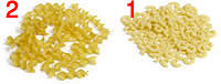 مقایسه پاستای حاوی تخم مرغ (2) و بدون تخم مرغ(1):