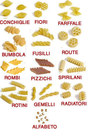 پاستا در سراسر جهان به 600 فرم مختلف عرضه میگردد.