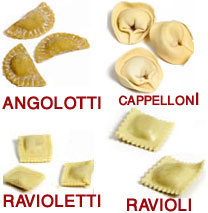 6-پاستای پر شده: این پاستاها با گوشت، قارچ، سبزیجات و پنیر پر شده اند. متداولترین پاستای این گروه راویولی (ravioli) نامیده میشود.